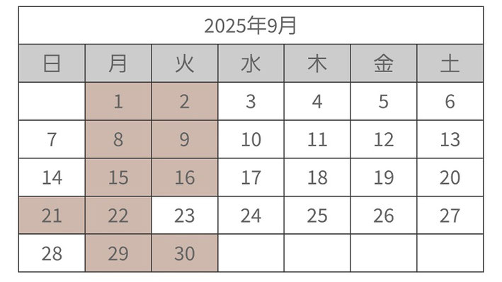 26日 8月 2025 9月の定休日は… おはようございます! 十日町市creadorの折田です (^^)/ 只今、十日町まつりの最中ですが これが終わるとそろそろ9月ということで 定休日をお知らせさせていただきます! まだまだ暑い日が続くそうですが 来月もcreadorをよろしくお願いします! tagPlaceholderカテゴリ:
